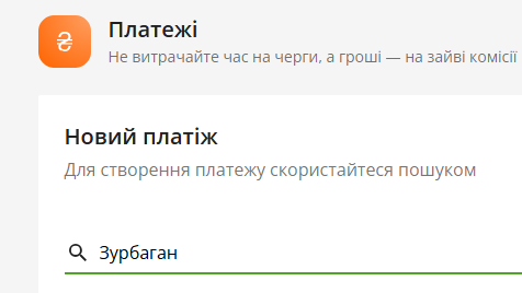 Увійти в Приват24, відкрити вкладку «Платежі», у пошуковому рядку ввести назву підприємства «Зурбаган» або код підприємства – 22978373.
