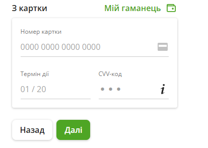 - CVV код (знаходиться на зворотній стороні Вашої банківської карти)